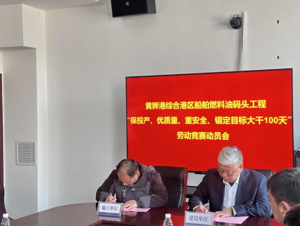 随着“大干100天”的号令吹响,沧州渤海新区港坤船舶燃料有限拼搏在线(中国)唯一官方网站统筹项目建设质量和建设效率,全力以赴、拿出百分之百干劲,扎实推进黄骅港综合港区船舶燃料油码头项目建设,2月26日组织召开“保投产、优质量、重安全、锚定目标大干100天”劳动竞赛动员会。森旭拼搏在线(中国)唯一官方网站、港坤船舶燃料拼搏在线(中国)唯一官方网站董事长鲍卫国,拼搏在线(中国)唯一官方网站其他班子成员及参建单位主要负责人参会。