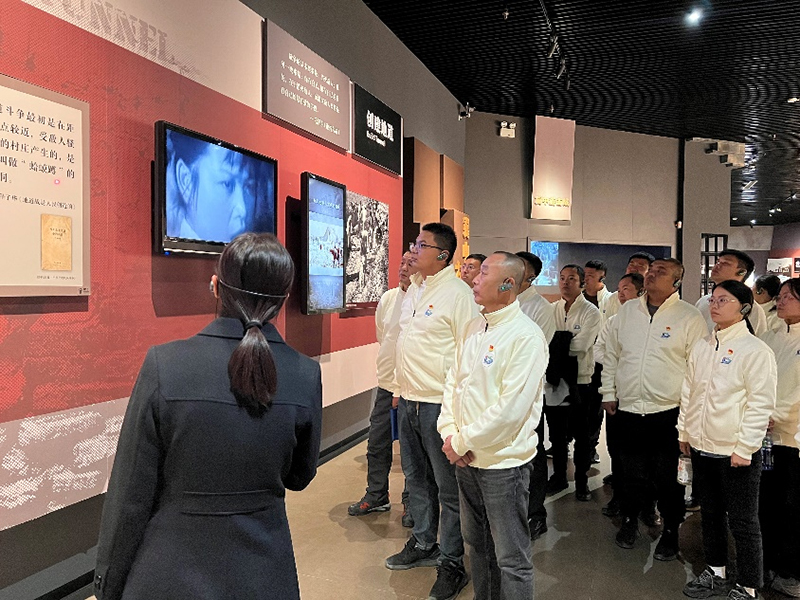 在保定狼牙山红色教育基地,党员们齐聚狼牙山五勇士雕像前,怀着肃穆的心情,迎着鲜红的党旗重温入党誓词,一句句铿锵有力的誓言彰显着对党的坚定信念和为党的事业奋斗终身的决心。随后,大家参观了狼牙山五勇士陈列馆,大量珍贵的抗战图片、文物生动再现了狼牙山五勇士抗击日寇、英勇跳崖的英雄历史,大家不时驻足观看,凝神静思,感悟着革命先烈们临危不惧、迎难而上、保家卫国的悲壮情怀,赓续英雄精神,汲取前进力量。