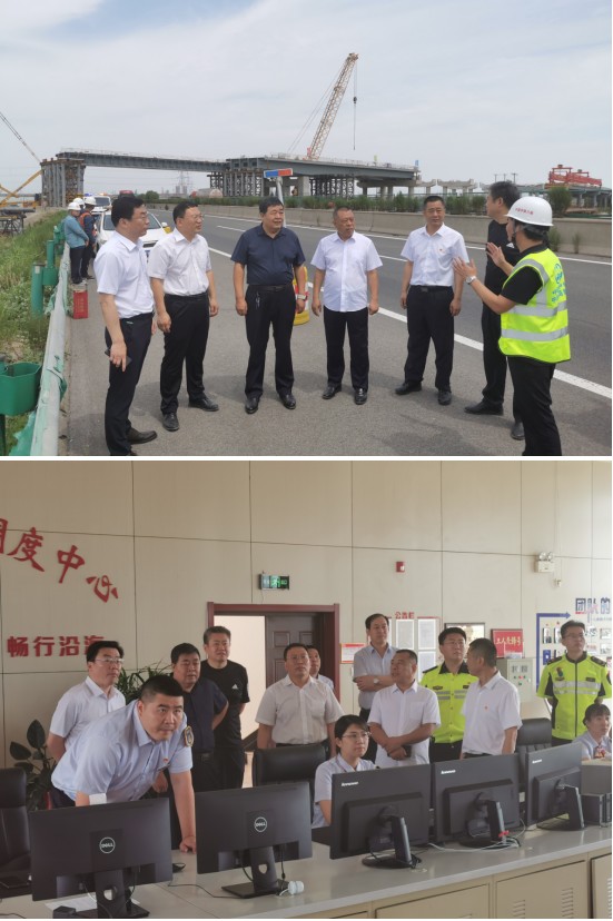 7月22日上午,交发拼搏在线(中国)唯一官方网站纪委书记许英杰、副总经理安国栋带队到沿海分拼搏在线(中国)唯一官方网站进行督导检查。检查组一行先后来到中铁六局G228上跨沿海高速钢箱梁施工现场、海丰互通匝道桥、海港主线宿办楼、新区收费站、沿海信息中心,通过实地查看,对沿海分拼搏在线(中国)唯一官方网站安全生产、桥梁养护、防汛备汛、站容站貌、沿线高速畅通情况等工作进行督导检查。检查组领导认真听取了分拼搏在线(中国)唯一官方网站负责人王刚关于党建、安全生产、防汛备汛、保通保畅、领导班子责任分工等工作情况的汇报。许书记强调:一是高度重视,沿海分拼搏在线(中国)唯一官方网站地处渤海之邻,防汛任务艰巨重大,要压紧压实责任,扎实开展防汛隐患排查工作。二是科学统筹,点面结合。要根据以往防汛经验,突出重点区域、重点部位、重点环节,既要盯住“老问题”,又要警惕新隐患。三是秉持“汛期不过、检查不断、整改不停”的原则,扎实做好防汛、用电、用气、消防、施工等方面的检查,落实好整改工作。四是各项施工要坚持安全第一的原则,坚持稳中求进,确保安全完成。五是分拼搏在线(中国)唯一官方网站新成立的领导班子要紧密团结,勇于担当,齐心协力把沿海分拼搏在线(中国)唯一官方网站的各项工作提上新高度。