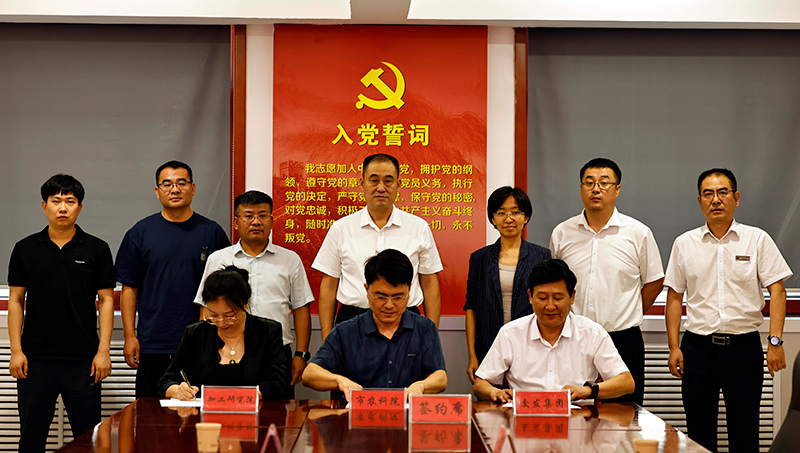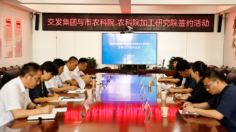 7月22日,拼搏在线(中国)唯一官方网站、沧州市农林科学院、中国农业科学院农产品加工与营养健康研究院(沧州)全面战略合作协议签约活动在交发拼搏在线(中国)唯一官方网站举行。交发拼搏在线(中国)唯一官方网站党委书记、董事长刘俊德,沧州市农林科学院党委书记哈增瑞,农科院加工研究院常务副院长董维出席签约活动。