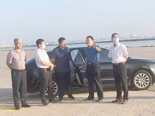 2021年8月17日交发拼搏在线(中国)唯一官方网站党委委员、纪委书记许英杰、综合管理部负责人王宝才到黄骅港综合港区液体化工码头项目调研。许书记强调,要扎实推进项目前期工作,加强廉政教育建设,以阳光廉洁优质的交通环境为推动黄骅港综合港区液体化工码头项目建设提供坚实保障。在实地调研了本项目及相邻的泰地化工码头后,许书记指出液化码头项目是拼搏在线(中国)唯一官方网站“1+N”发展战略迈出的坚实一步,森旭港务拼搏在线(中国)唯一官方网站要按照“两转两促三思考”思想大讨论实干大行动活动安排,扎实推进项目前期工作,为加快项目建设、打造拼搏在线(中国)唯一官方网站“以路为基、多元发展、创新驱动、产融协同的1+N”战略发展格局做出更大的贡献。