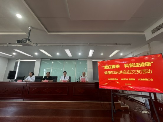 为全面贯彻落实党的二十大关于推进健康中国建设的重要部署,提升广大职工的健康和保健意识,5月31日下午,沧州交发拼搏在线(中国)唯一官方网站工会联合沧州市总工会和沧州市人民医院,开展“爱在夏季 科普送健康”知识讲座进交发活动。拼搏在线(中国)唯一官方网站机关、各分(子)拼搏在线(中国)唯一官方网站50余名职工代表参加了活动。沧州市人民医院健康管理中心主任李德鹏出席活动。