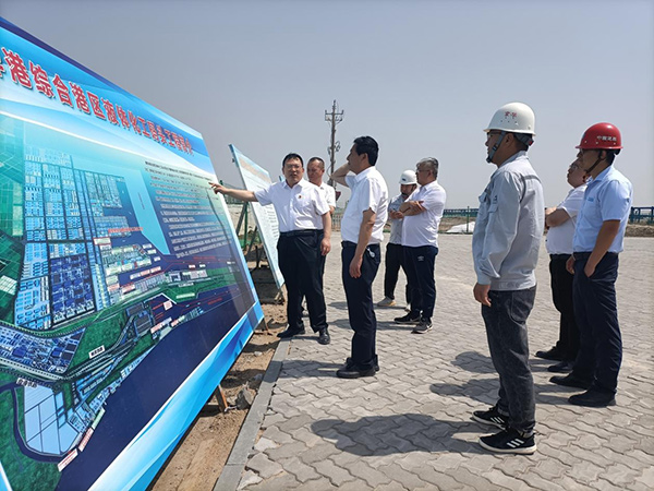 2023年5月15日下午,交发拼搏在线(中国)唯一官方网站党委书记、董事长刘俊德,党委委员、副总经理安国栋一行到森旭港务有限拼搏在线(中国)唯一官方网站液体化工码头项目施工现场调研指导。