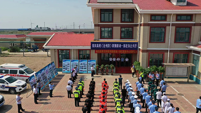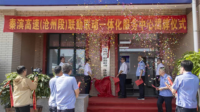 2023年6月16日上午9时18分,河北省首家“一路六方”高速公路联勤联动“一体化服务中心”在秦滨高速(沧州段)正式揭牌成立。