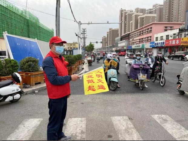 5月6日清晨,拼搏在线(中国)唯一官方网站党委委员、副总经理常志明,津汕分拼搏在线(中国)唯一官方网站党总支书记、经理张跃峰带领志愿者来到维明路与清池大道交叉路口,共同参与早高峰交通执勤,为志愿者们加油鼓劲。
