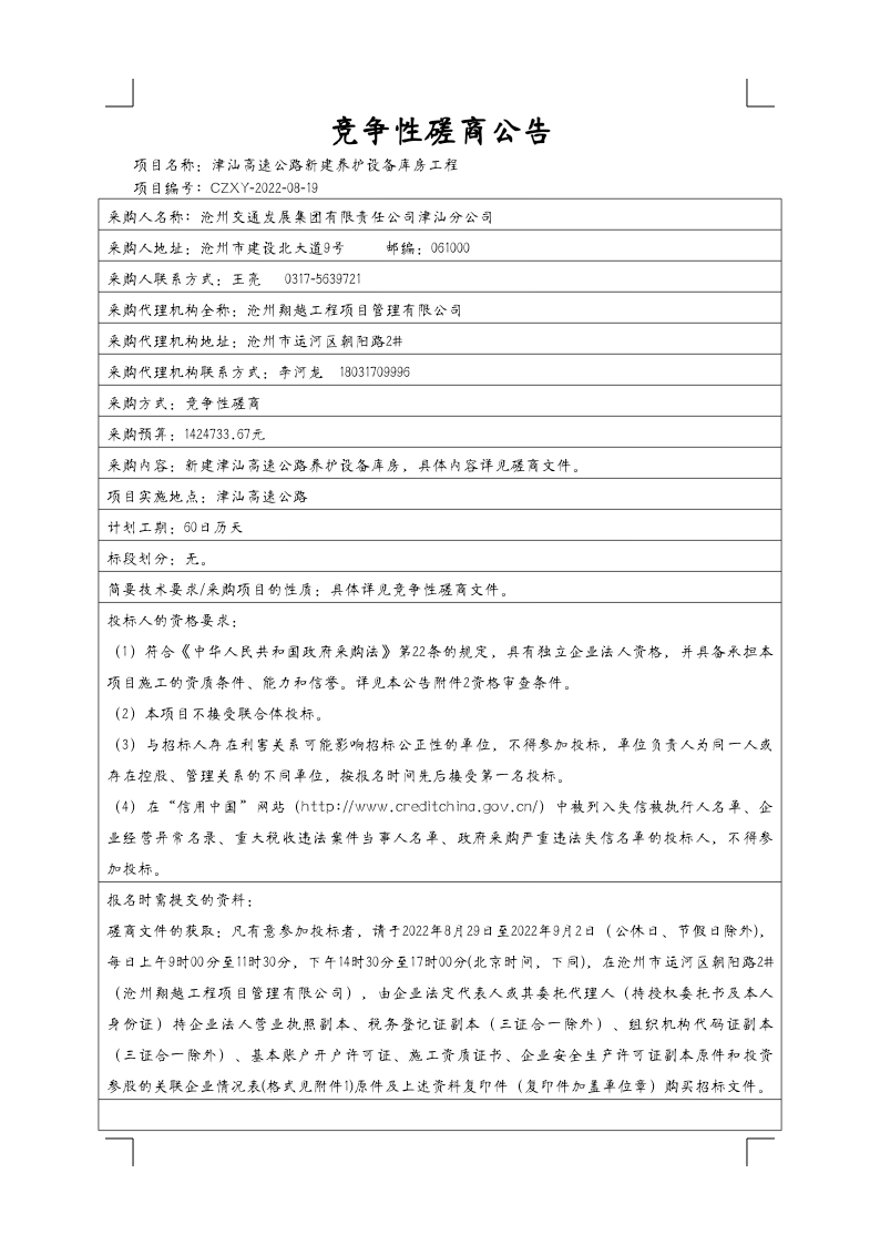 新建养护设备库房竞争性磋商公告