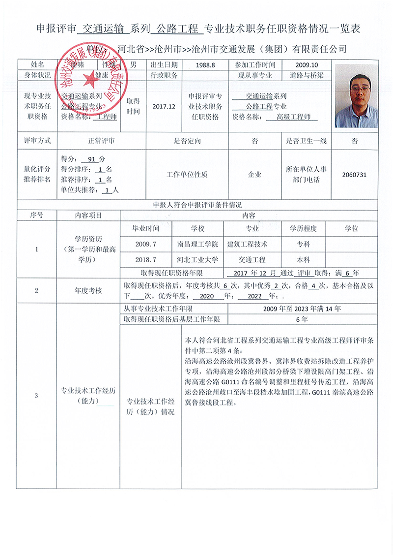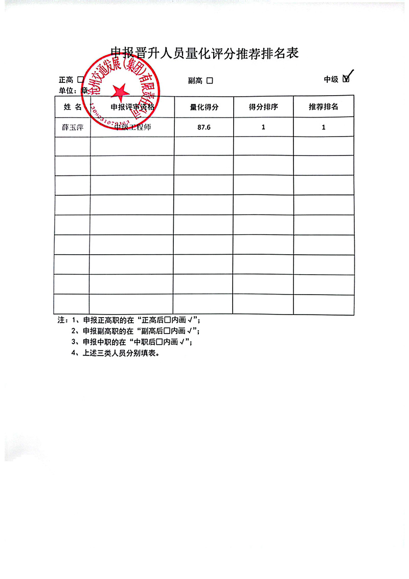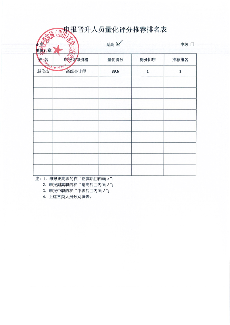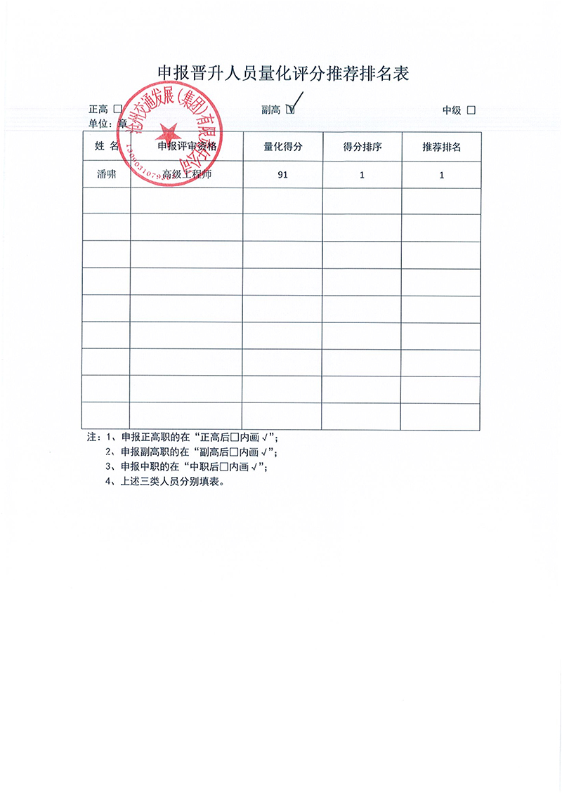 交发拼搏在线(中国)唯一官方网站申报晋升人员量化评分推荐排名表