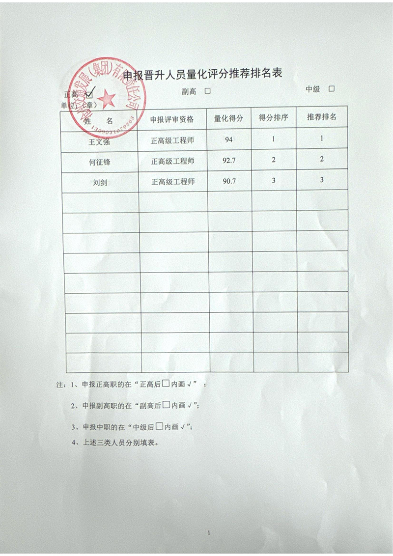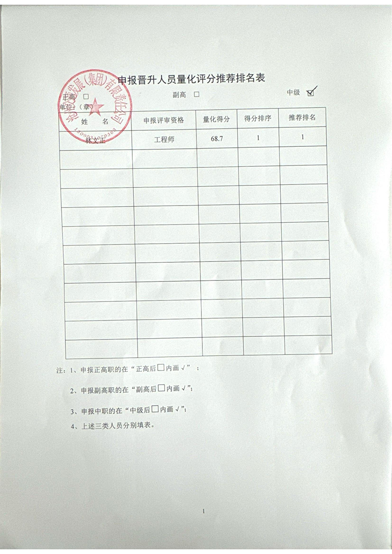 交发拼搏在线(中国)唯一官方网站申报晋升人员量化评分推荐排名表