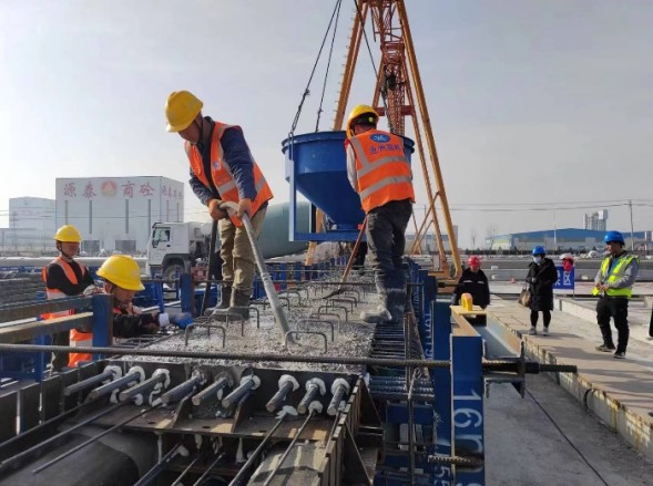12月8日G18荣乌高速沧州段改扩建工程二分部三号梁场首片16米矮T梁顺利浇筑完成,标志着桥梁梁板预制施工正式开始。