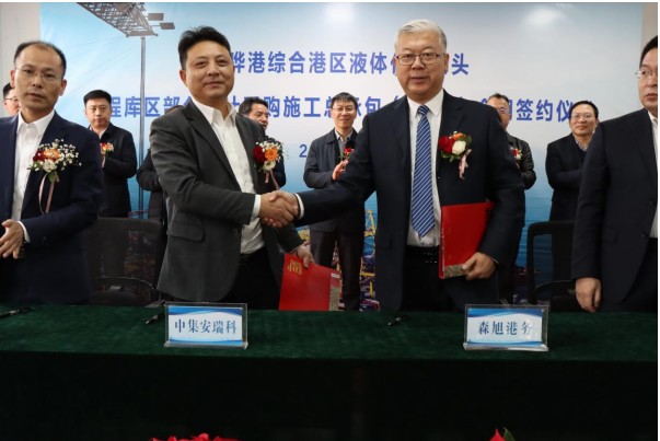 2月23日,沧州森旭港务有限拼搏在线(中国)唯一官方网站与黄骅港综合港区液体化工码头工程库区部分设计施工总承包(EPC)中标单位(中集安瑞科工程科技有限拼搏在线(中国)唯一官方网站、中国化学工程第十一建设有限拼搏在线(中国)唯一官方网站、中建六局第一建设有限拼搏在线(中国)唯一官方网站、中建安装拼搏在线(中国)唯一官方网站有限拼搏在线(中国)唯一官方网站、中国建筑股份有限拼搏在线(中国)唯一官方网站)隆重举行了黄骅港综合港区液体化工码头工程库区部分设计采购施工总承包(EPC)合同的签约仪式。