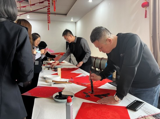 “送福字”环节备受大家青睐。省书协会员傅化冰老师携手拼搏在线(中国)唯一官方网站拼搏在线(中国)唯一官方网站书画爱好者张希林、回春宝、陈迪等六位同志现场挥毫泼墨,笔锋游走间,一幅幅寓意吉祥的春联、一张张饱含祝福的书画跃然纸上。职工们里三层外三层围在画桌旁,期待着属于自己的春联福字,现场墨香四溢,人人喜笑颜开,空气中充满着对新年的美好期许。