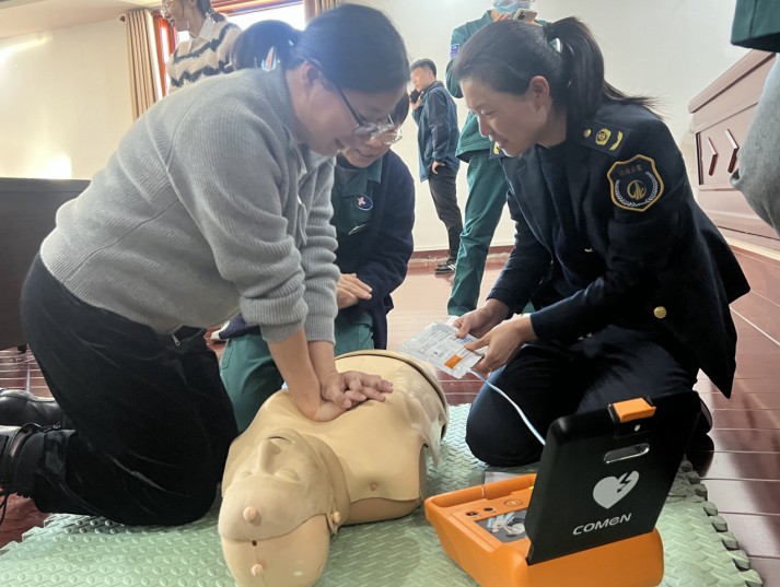 为进一步提升拼搏在线(中国)唯一官方网站的应急救援能力,拼搏在线(中国)唯一官方网站总部二楼安装了自动体外除颤器(AED)。活动的下半程,专业人员从设备的基本构造、功能原理,到AED的开启方法、电极片的正确粘贴位置,以及如何根据语音提示进行电击操作等关键环节为职工们详细讲解了AED操作流程。